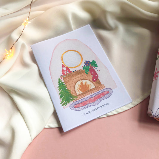 Winter Wishes Log Fire Christmas Card