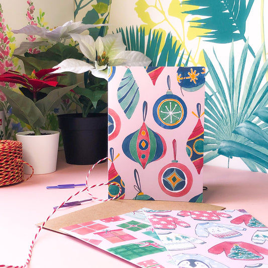 Retro Christmas Baubles Card