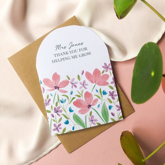 Personalised Teacher Thank You Card: Thanks For Helping Me Grow