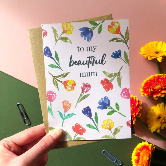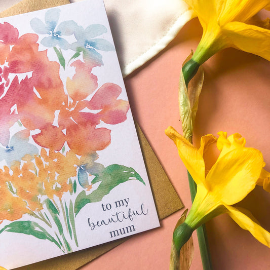 To My Beautiful Mum Watercolour Card
