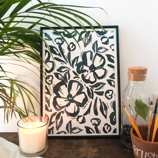SET OF 2 Prints: Blue Wildflower Camellia, Ink Tulips Prints A3