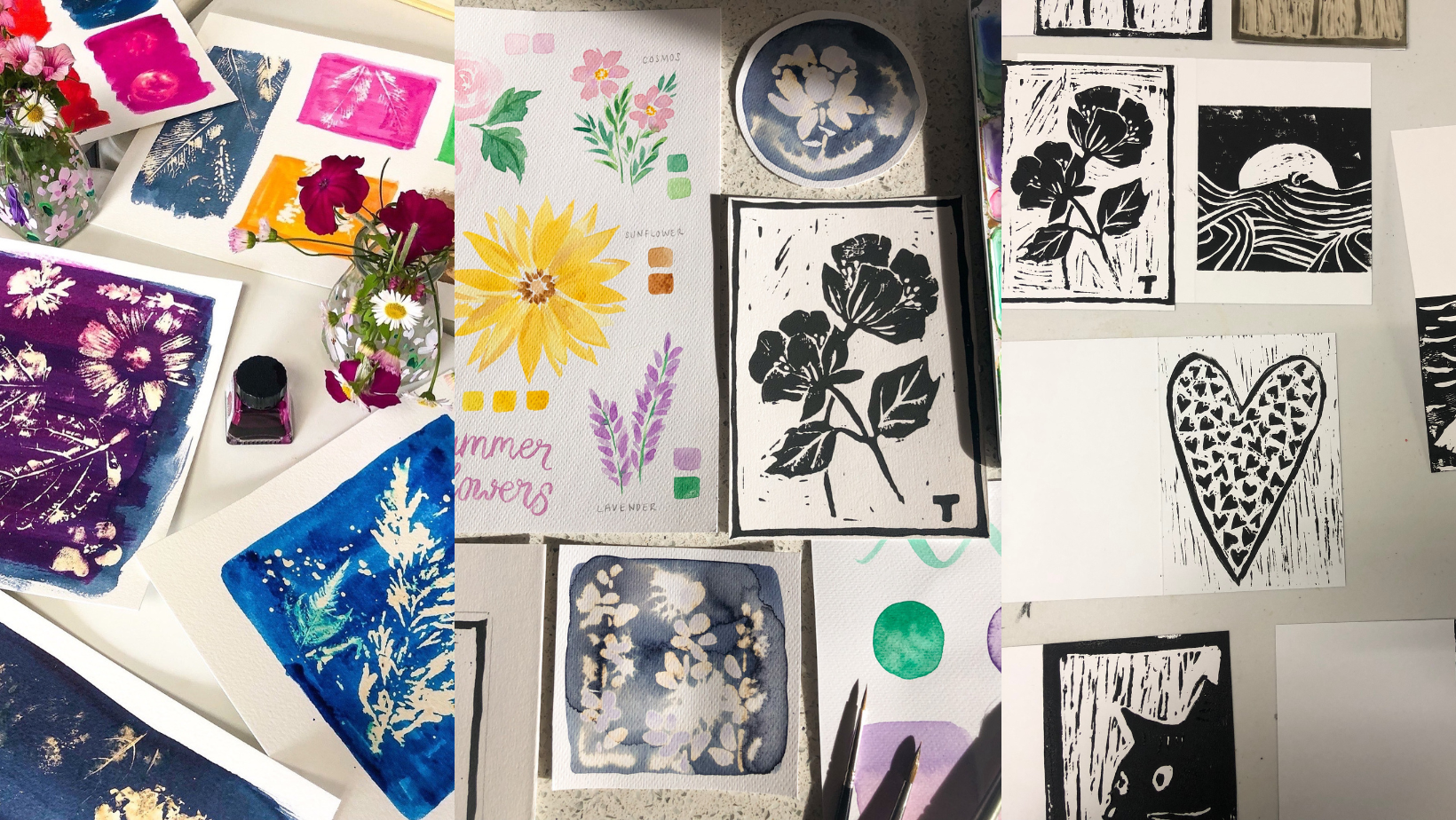 Learn how to design, cut and carve your own lino print! I'll help you create a unique design, and you'll leave with some handpainted greetings cards.